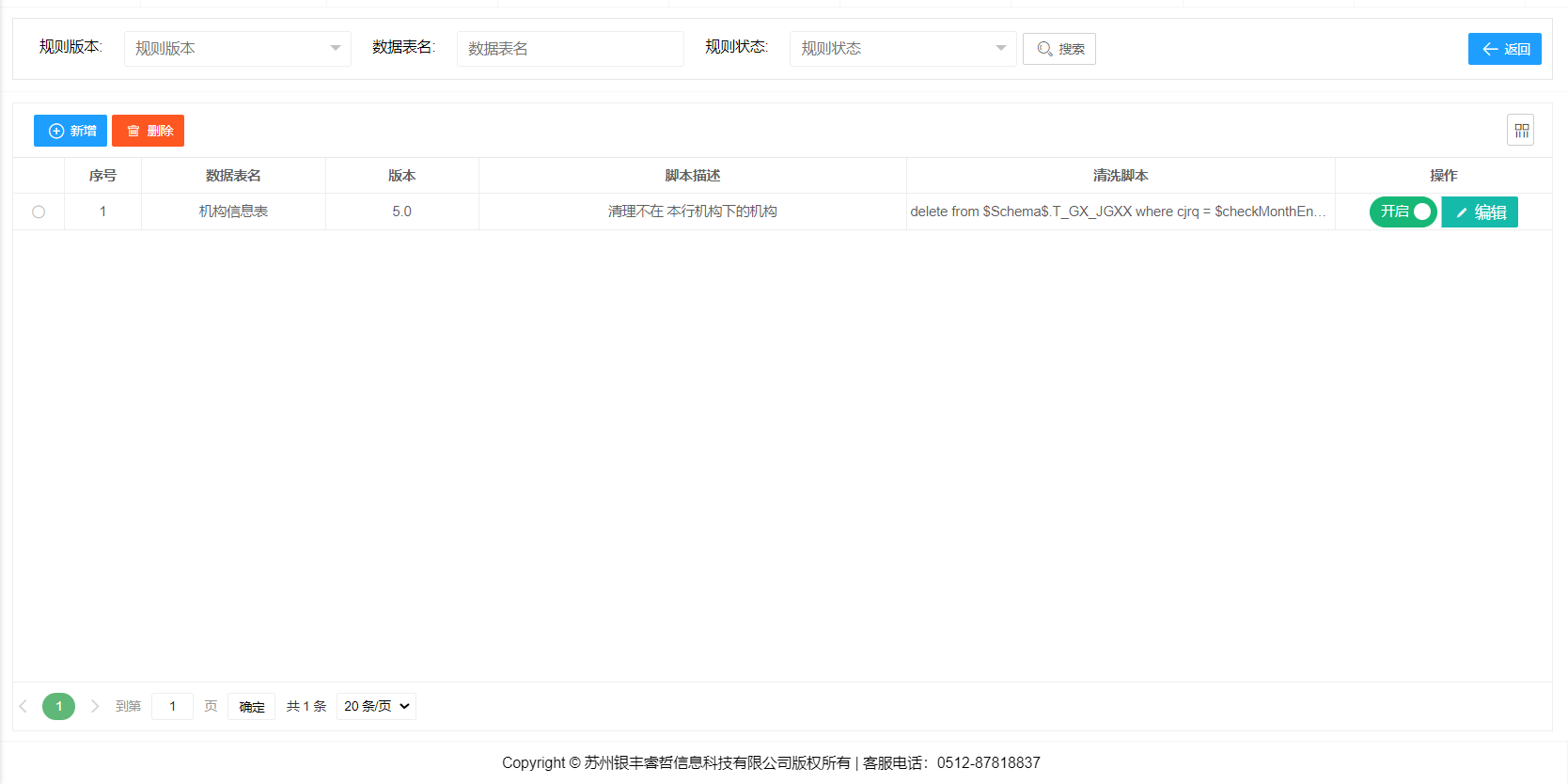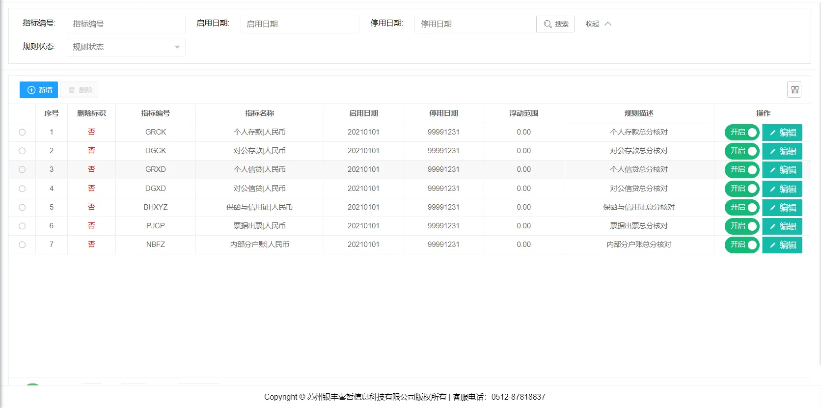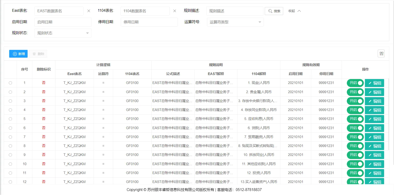 总分平衡规则维护主要是维护EAST总分核对规则,其中包含对规则的新增、修改、删除、查找等操作。