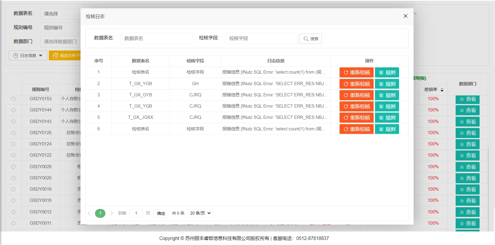 数据质量校验规则依托数据治理平台进行运行,运行的方式为增量数据方式和存量数据方式。运行的结果包括校验数据量、错误数据量等信息。