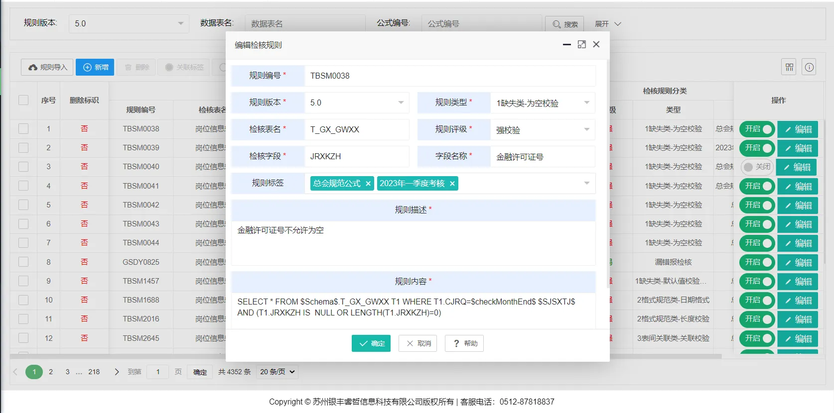 ●质量规则维护