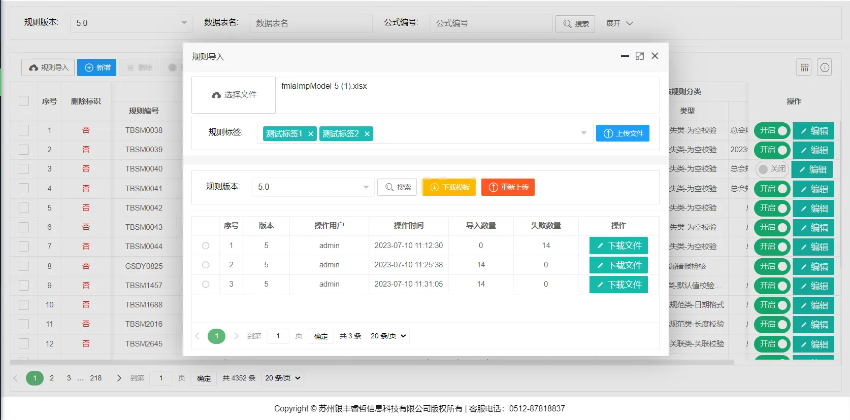 系统支持用户以可视化方式维护质量规则标签,该标签可应用于数据校验任务配置及校验结果查看场景,作为筛选条件使用,便于用户依据标签实现灵活的规则分类管理。