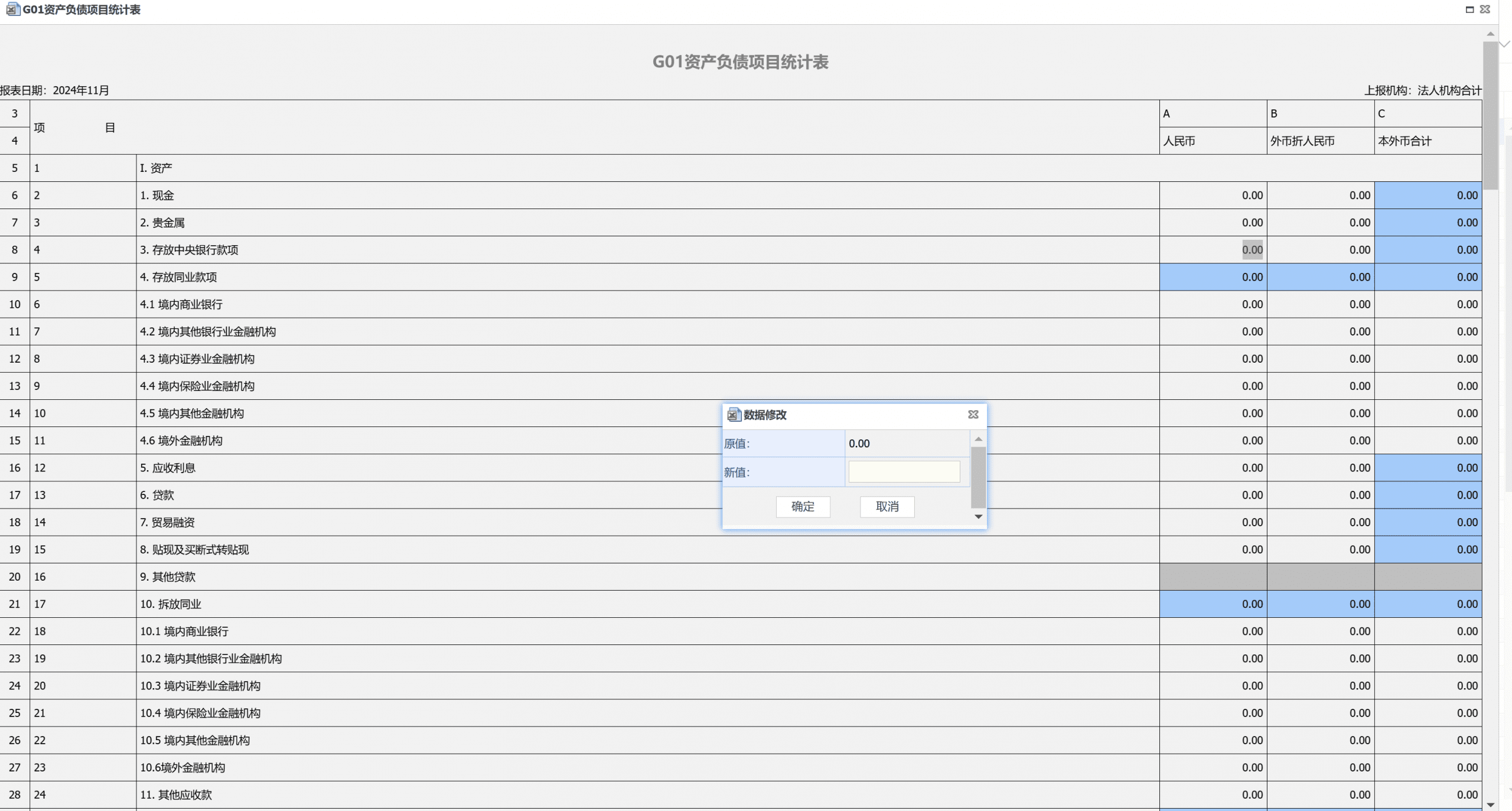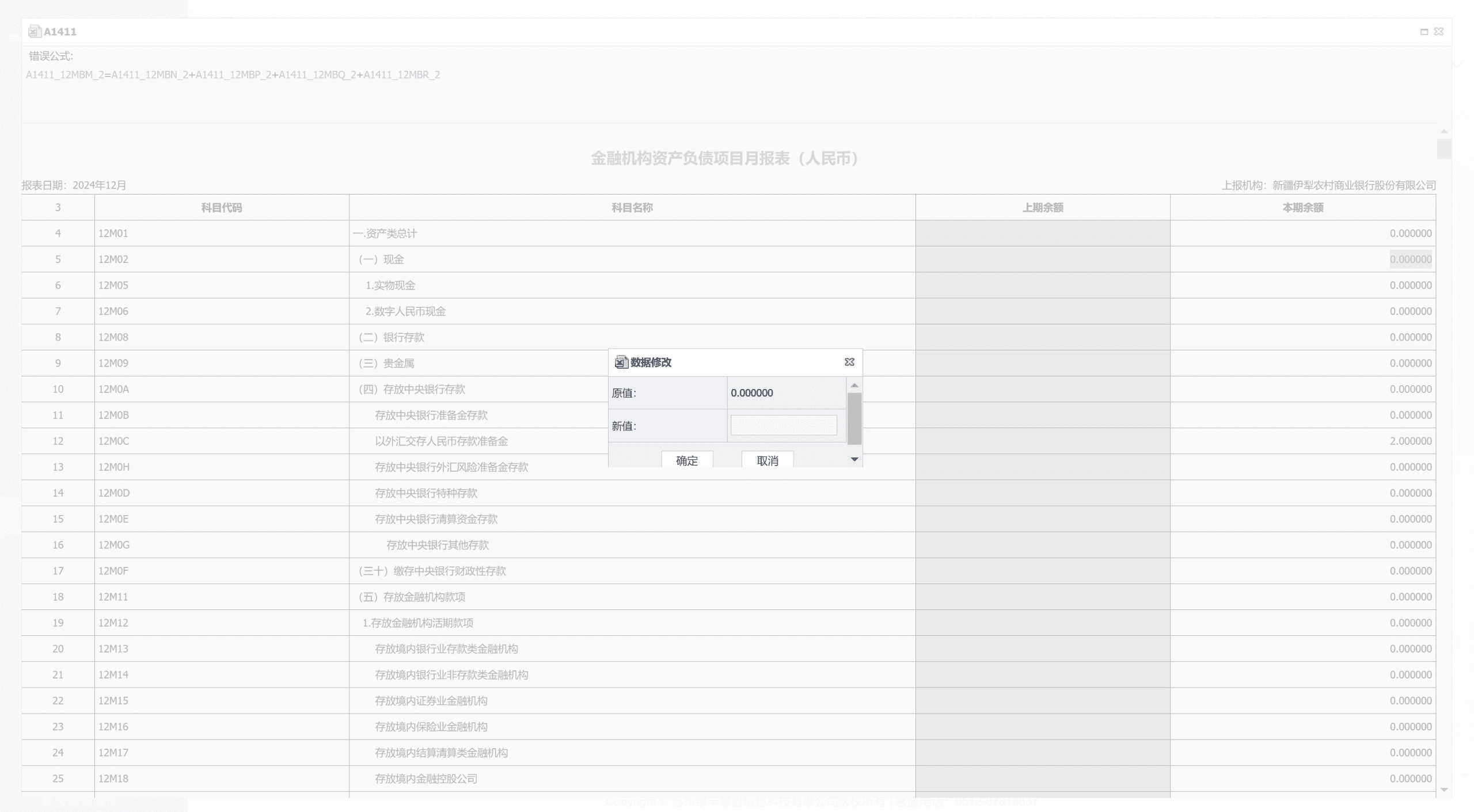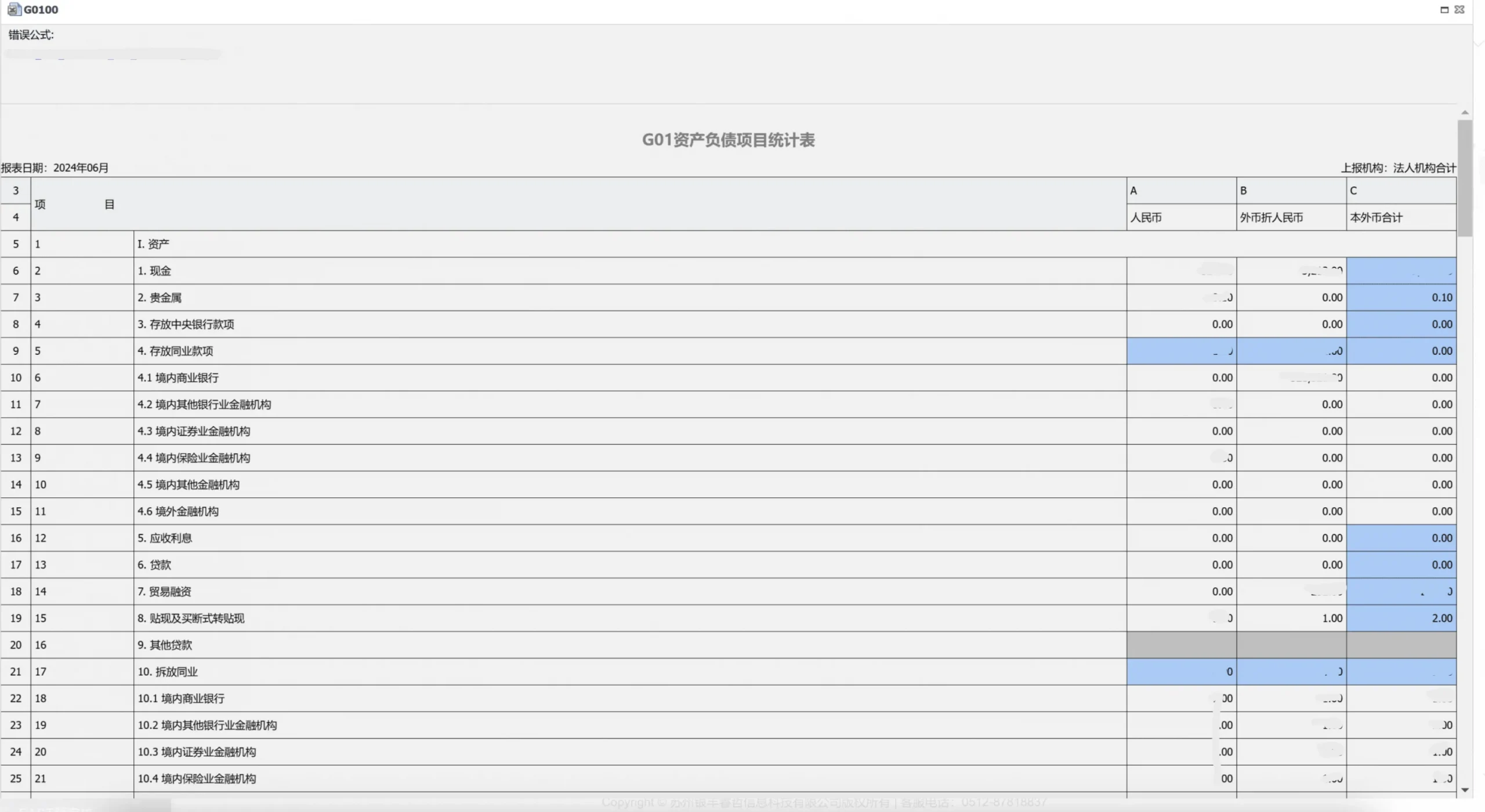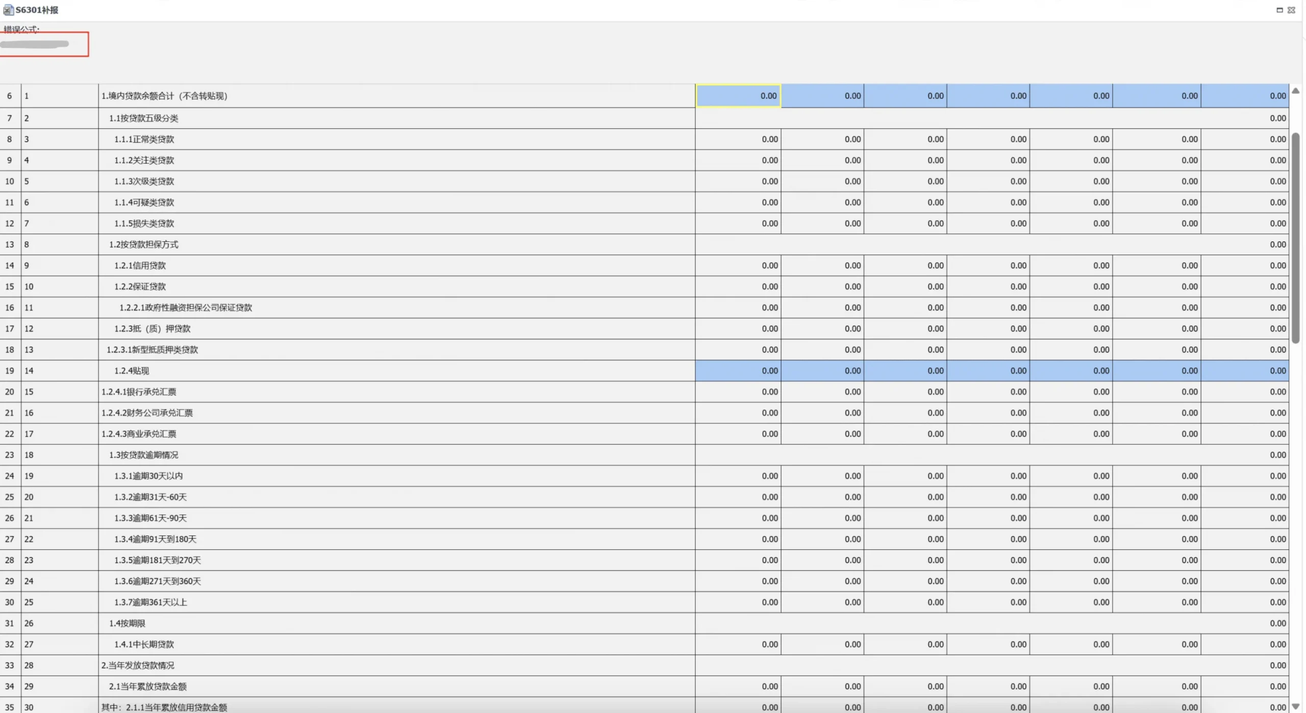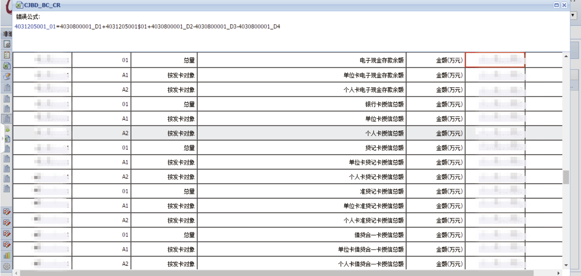 用户点击关联报表后,系统将展示报表详细信息页面。该页面会标注存在错误的公式,当用户点击蓝色标识文本时,页面会自动定位至对应单元格并以红色边框高亮显示。若报表处于未提交审核或审核未通过状态,用户可直接在该页面修改报表数据。