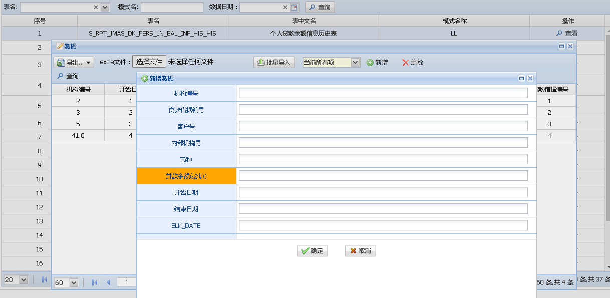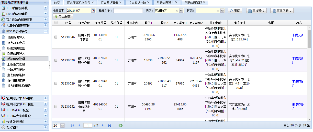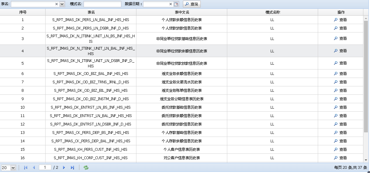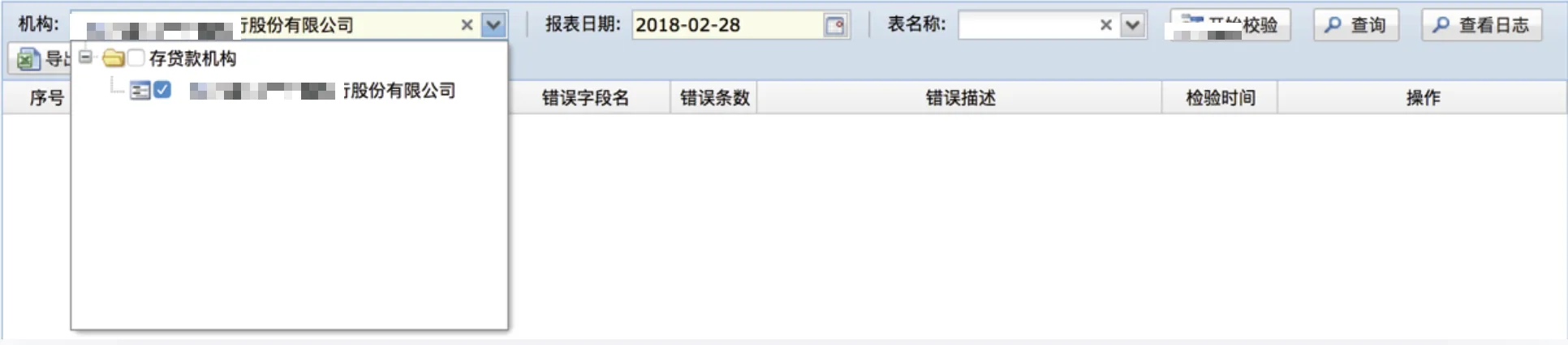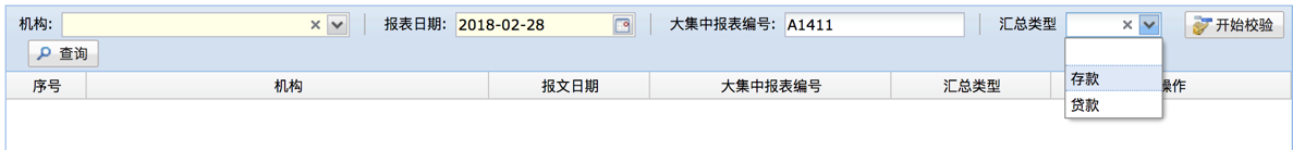 该功能是对金融基础数据校验,选择对应的条件对当期时间的数据进行校验,显示以表为单位进行分类显示。