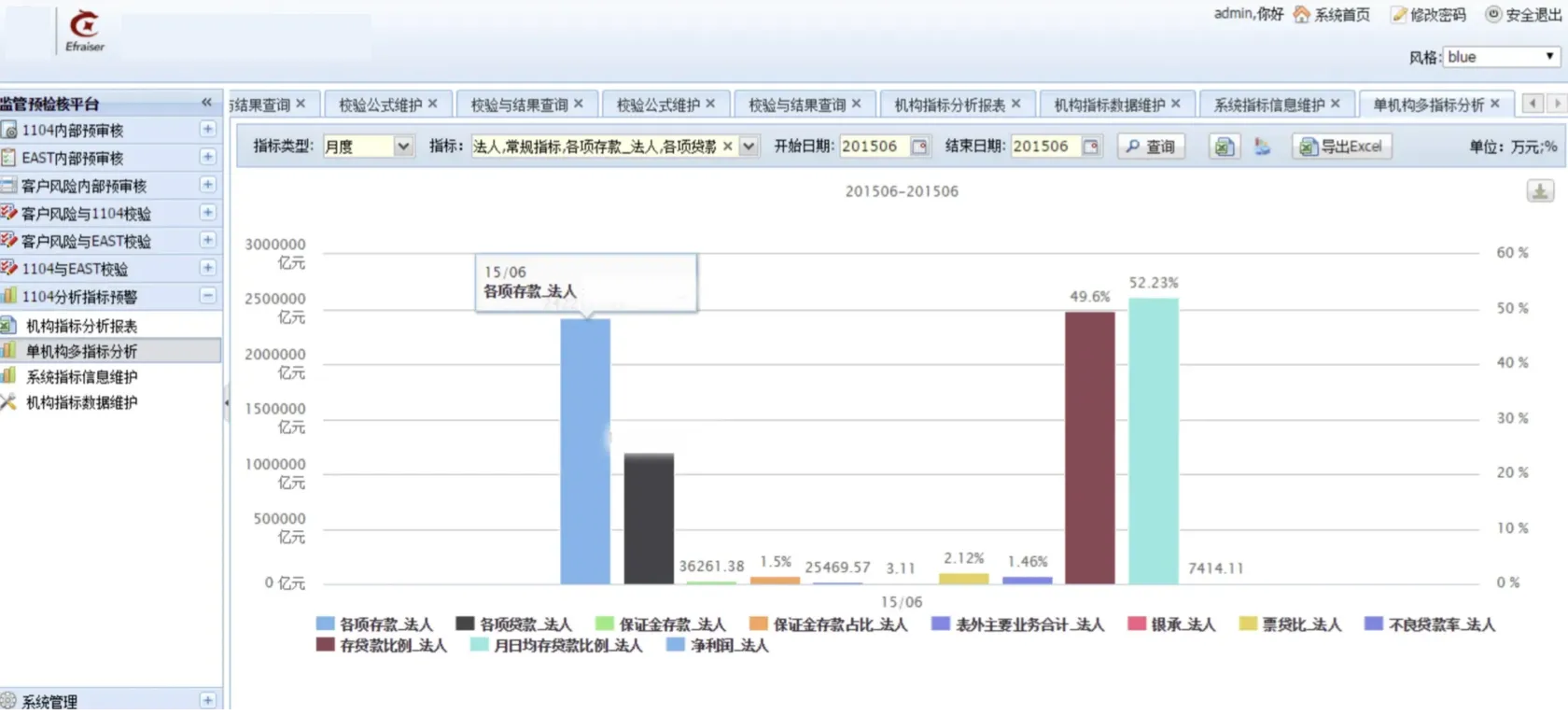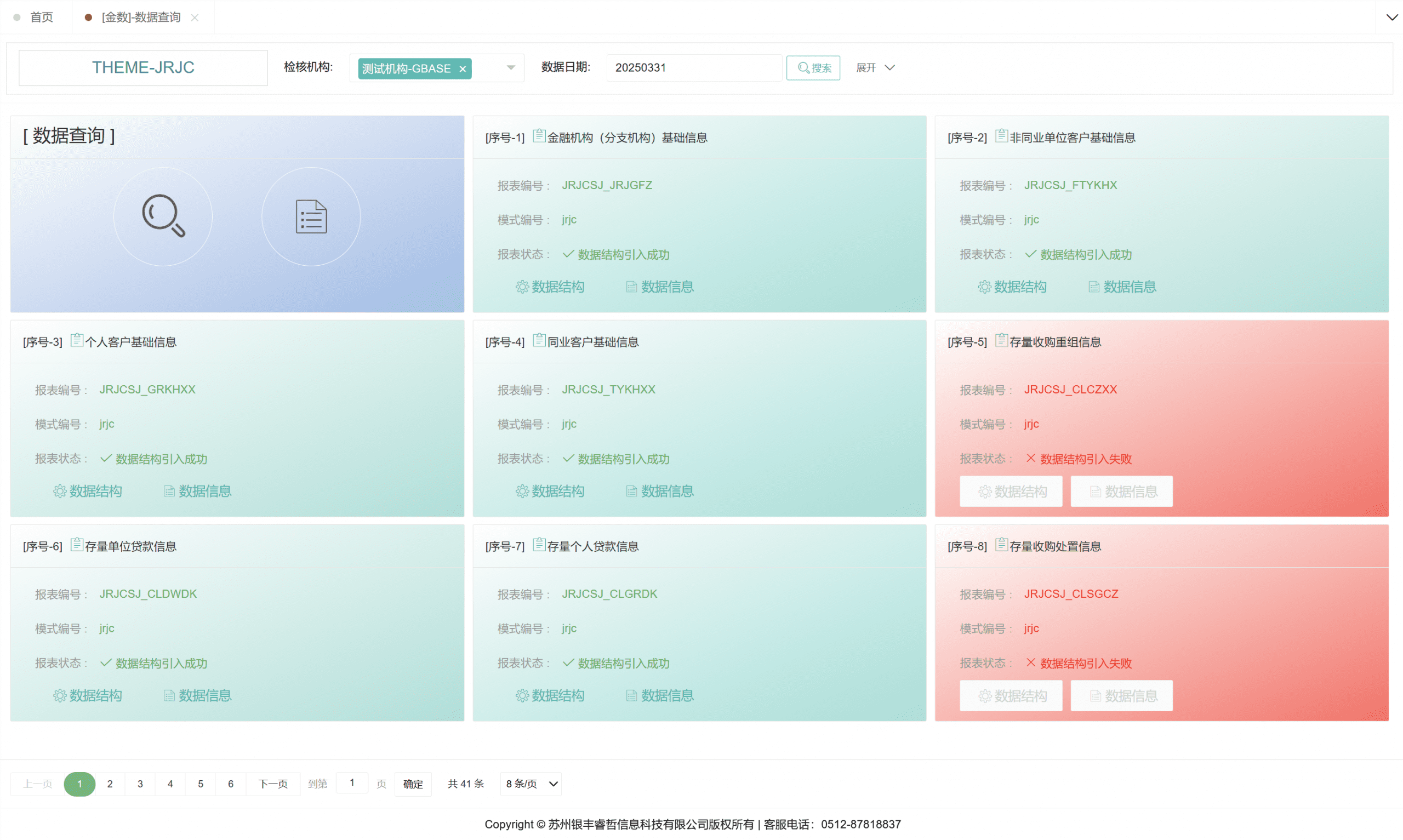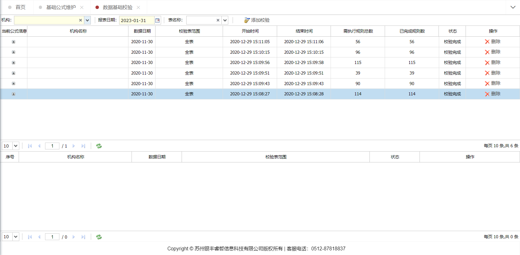 该功能是对金融基础数据校验,选择对应的条件对当期时间的数据进行校验,显示以表为单位进行分类显示。