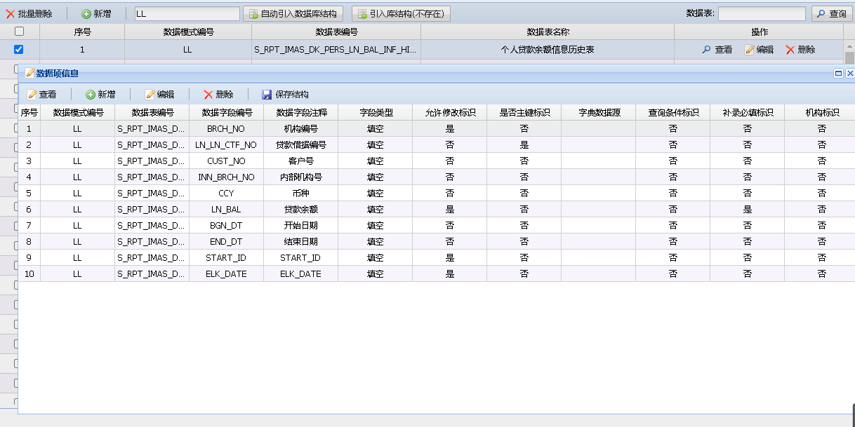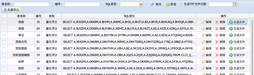 自动跑批相关配置,配置文件名与表名的映射、生成每个分片的最大数据条数、当前数据以及历史数据的查询sql、生成报文的顺序、以及该表数据是否上报。