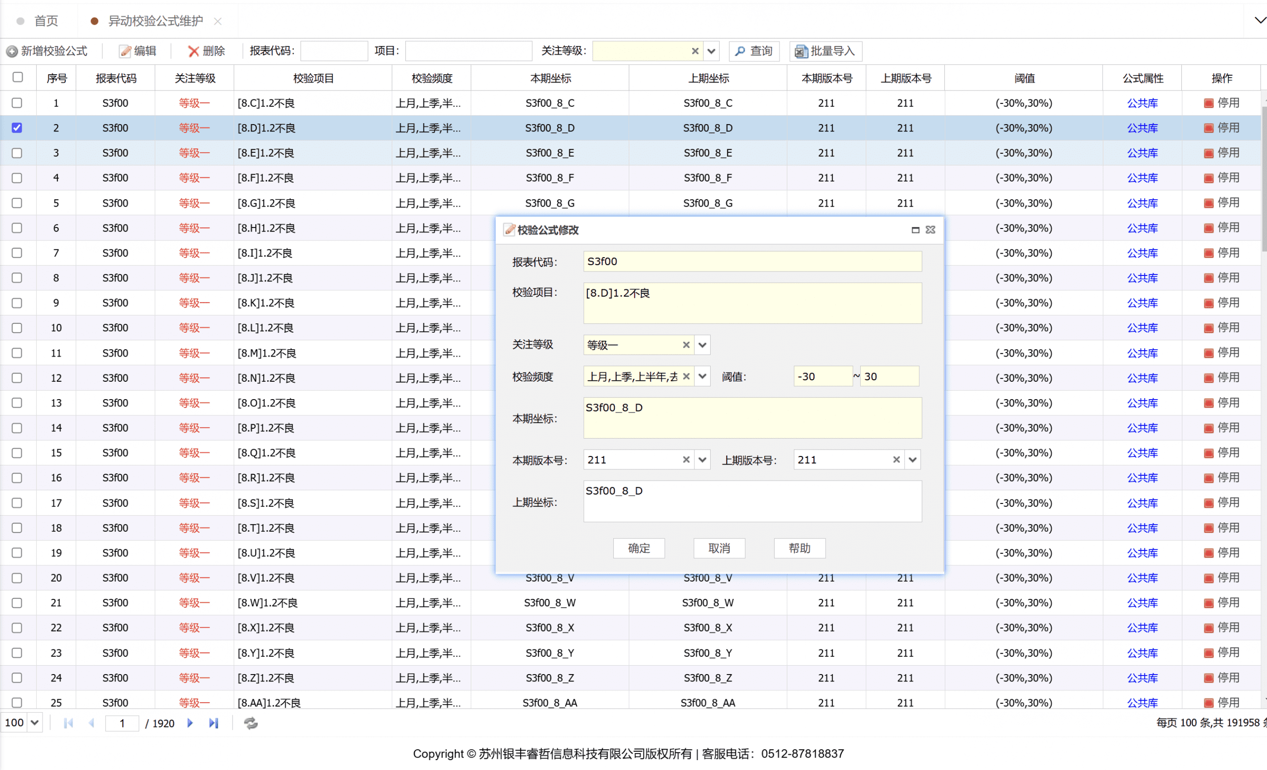 针对多行与单行数据进行比对的校验规则的制订,展示校验规则的相关信息。