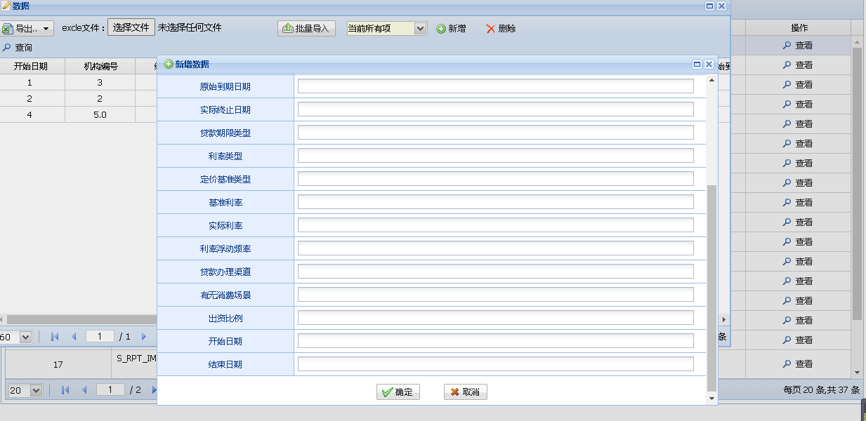 点击新增按钮用户可以单独新增一条数据。