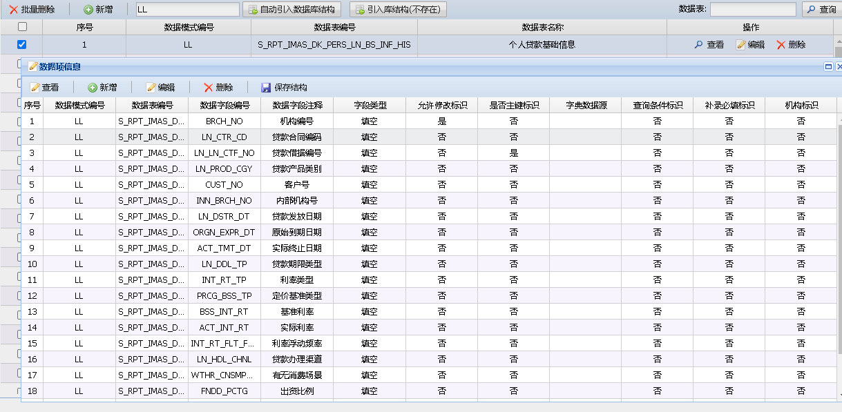 用户通过点击数据表选项卡中的”数据结构”按钮,进入专门的数据表结构管理界面。