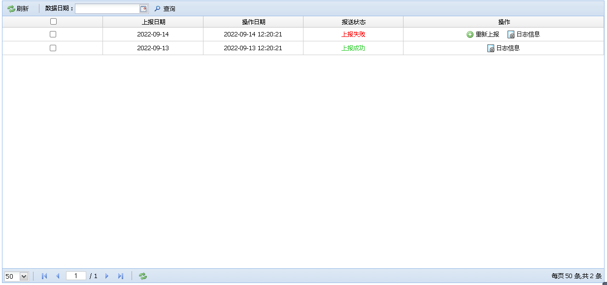 查看当前上报列表信息,可以查看日志信息,如果失败修改数据后可以选择重新上报。