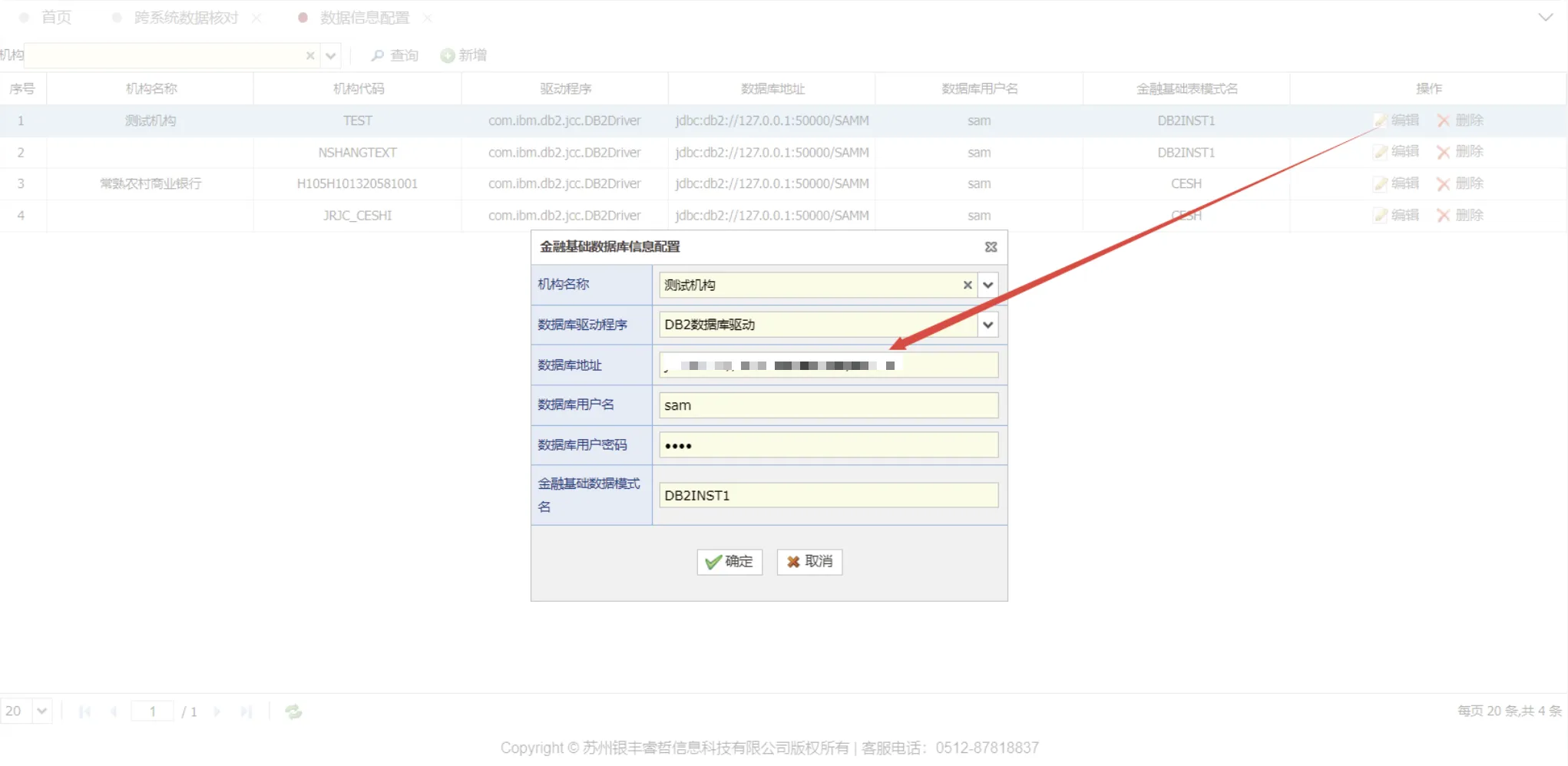 用于给金融基础数据机构配置数据源,所配置数据库地址为金融基础数据模块数据检核等功能的数据源,提供了数据源的新增、编辑和删除。