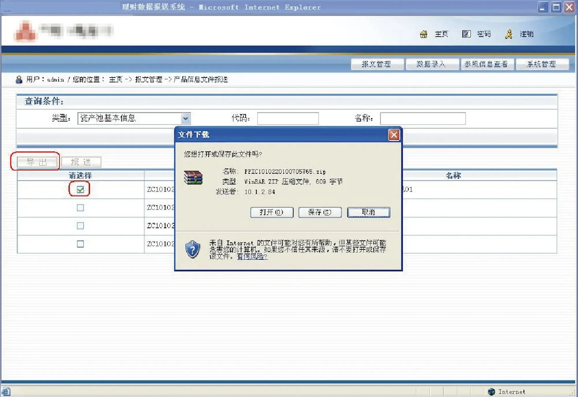用户可以对修改之后的报文进行导出操作,导出的报文可以直接上报人民银行:
