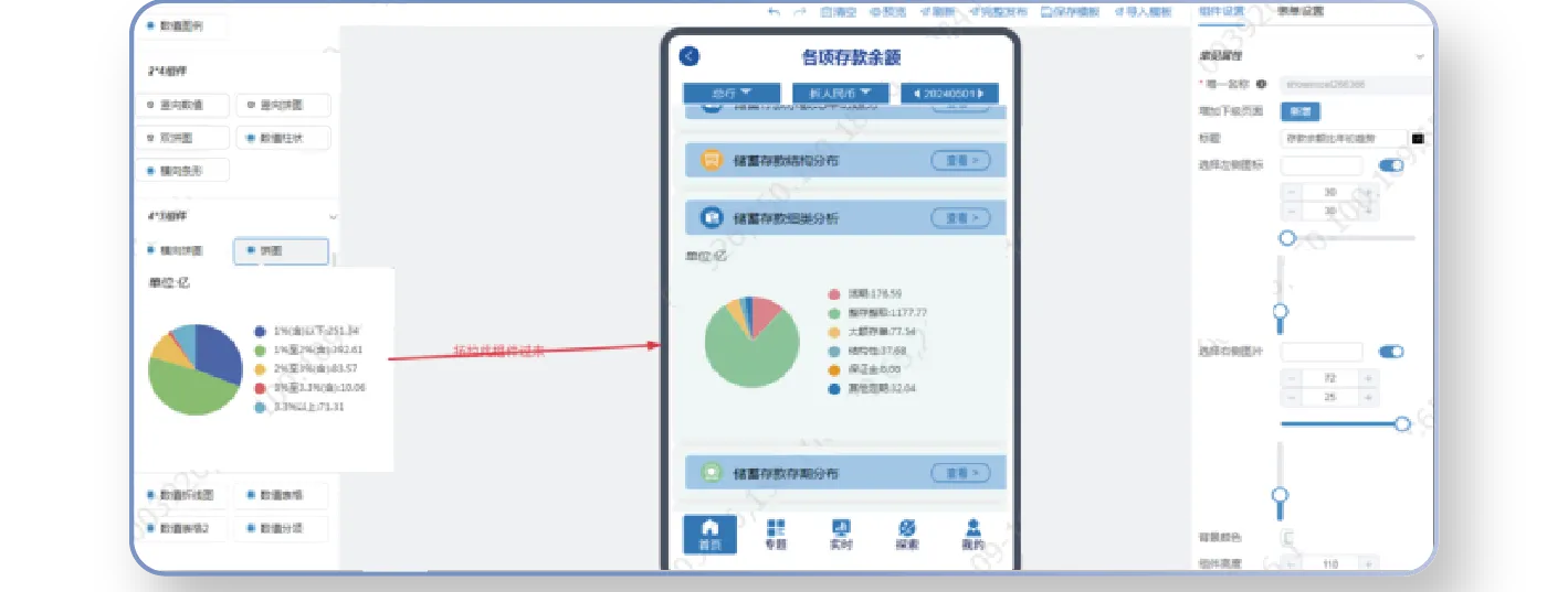 基于稳定的应用架构和标准指标,构建了一个拖拽式设计器工具。该设计器的技术核心依赖于UI组件库(Vue3 element plus)和数据可视化图表库(Echarts)。