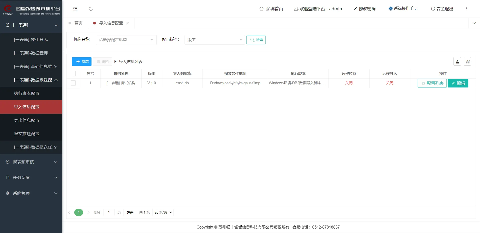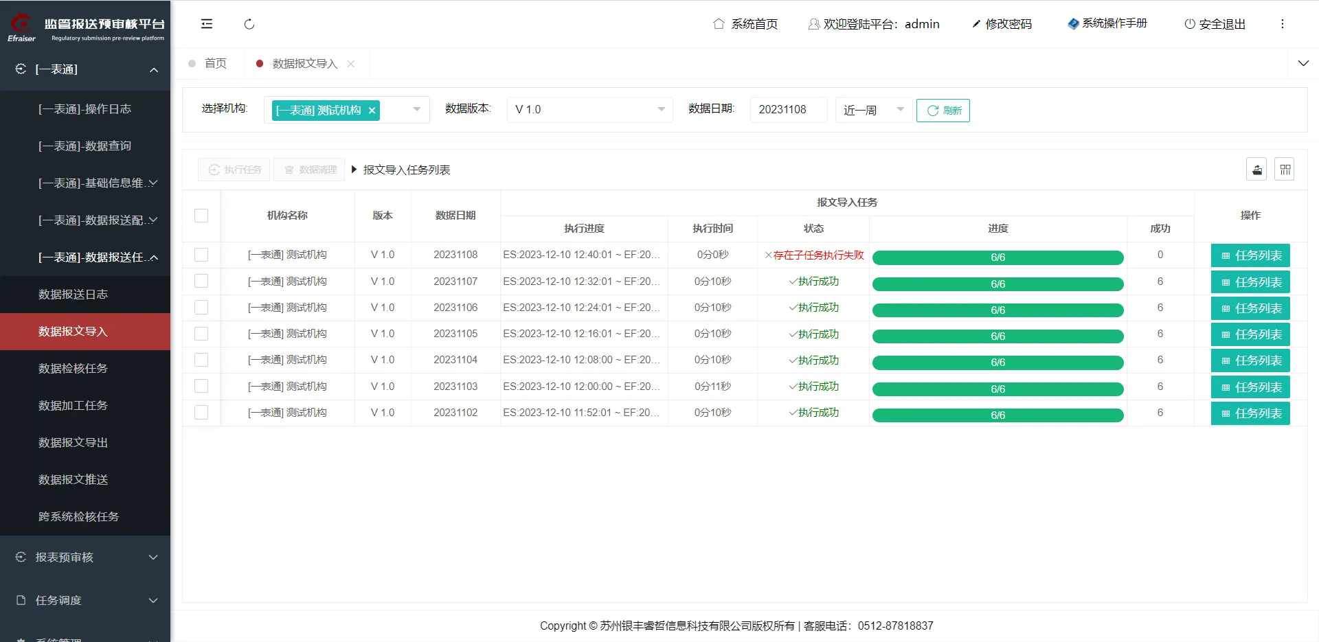 报文对接环节实现报文的自动化传输与状态管理,支持多种报送方式、支持多种对接源(对接预审核系统、直接对接可信区等)、报送任务调度、回执接收与解析、失败重传机制,并与监控系统联动,形成从生成到送达的完整可追溯链路。
