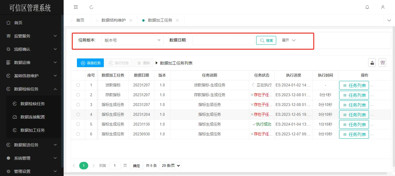 一表通可信区是金融机构与监管部门之间的数据协同平台,其核心能力覆盖数据采集、加工处理、质量审核、任务调度、服务响应与安全管控等关键环节,构建高效、可穿透、可运维的监管数据基础环境。
