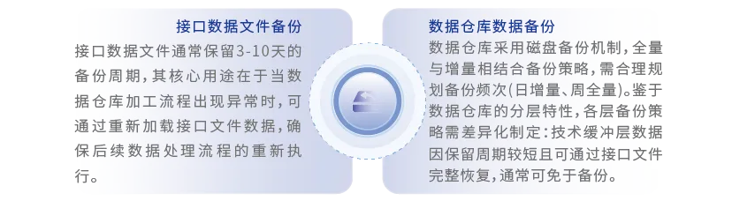 数据仓库数据的备份是数据仓库技术架构规划的一个重要内容。数据仓库的数据备份包括以下两个主要方面: