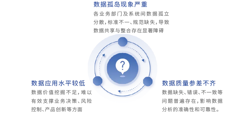 近年来,随着金融科技的迅猛发展和数字化转型的持续深化,银行业既迎来重大机遇,也面临严峻挑战。在数字经济时代,数据作为关键生产要素,已成为银行的核心战略资产和竞争优势所在。然而,当前众多银行在数据管理和应用领域仍存在显著短板。例如: