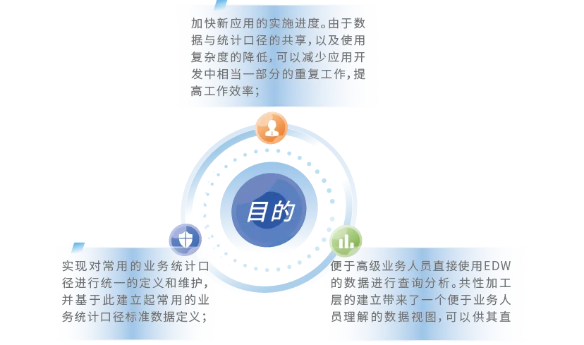 降低应用开发和数据查询的复杂程度。由于共性加工层从业务分析的视角组织数据,屏蔽了数据仓库的复杂性,便于前端应用的开发。
