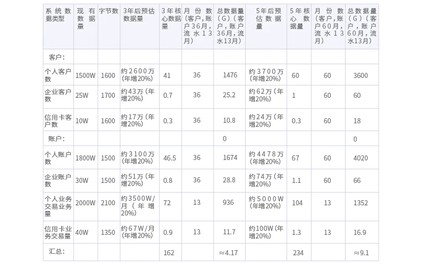 *注:此为容量估算方法示例,行内实际需要容量需要调研后确认